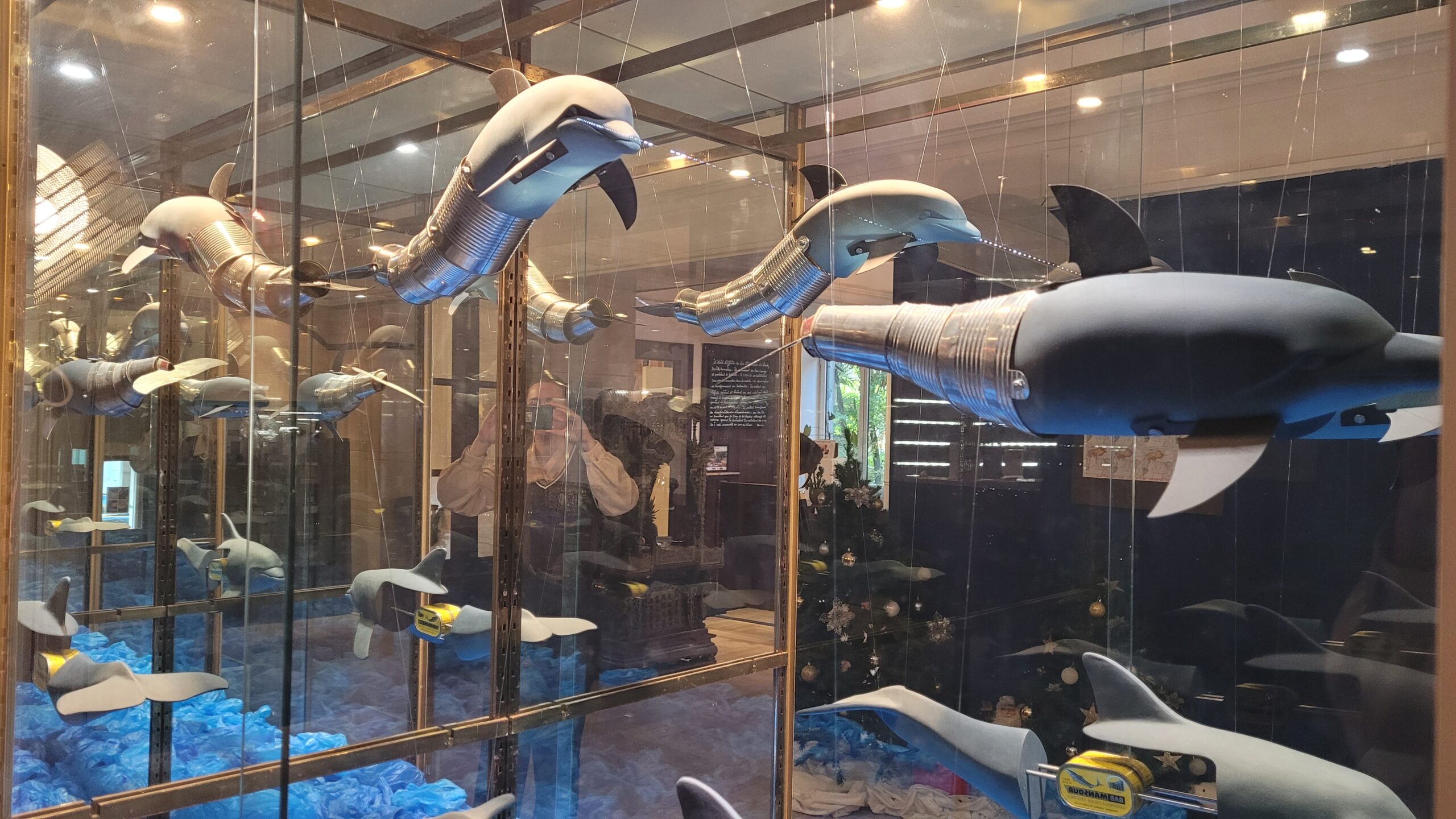 Les oiseaux de Guy Rottier virevoltent dans le hall avec humour.