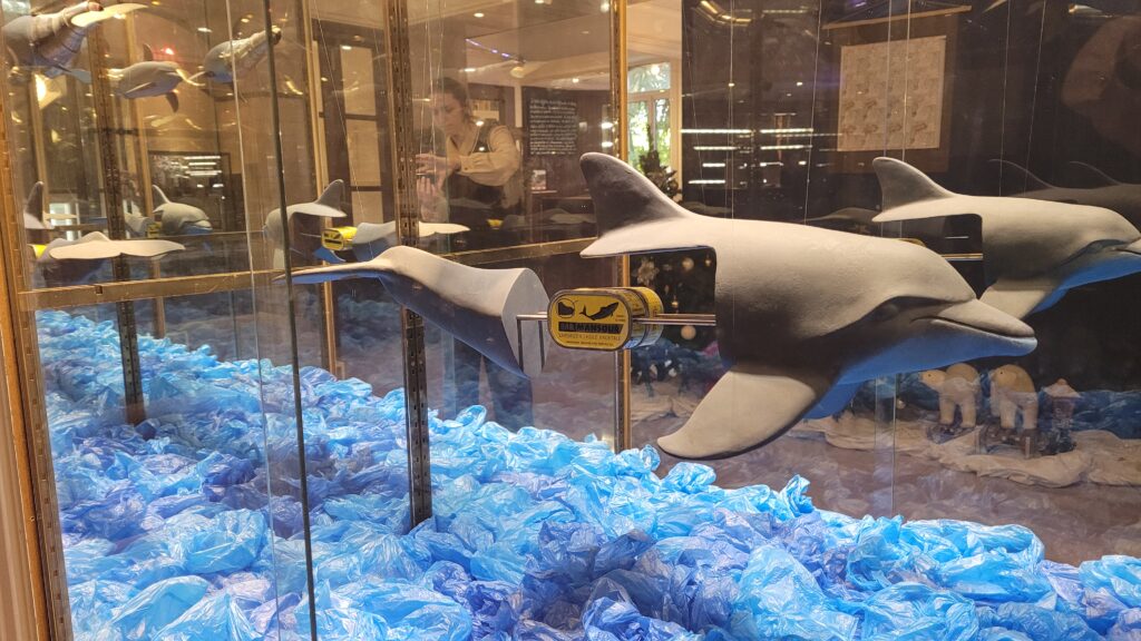 Sous forme d’hologrammes, réalisés grâce à un savant jeux de reflets, l’artiste apparaît dans des saynètes, qui plongeront les curieux niçois et résidents de l’hôtel dans un imaginaire burlesque et décalé, où dérision et premier degré sont de mise.